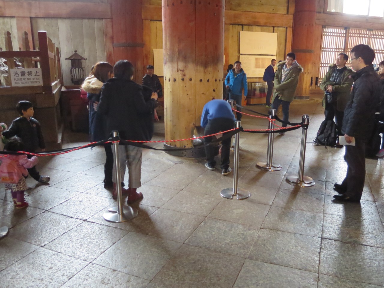 Ok, so it has been said that if you can fit through this hole, about the size of the great Buddha’s nostril, you will obtain enlightenment in your next life