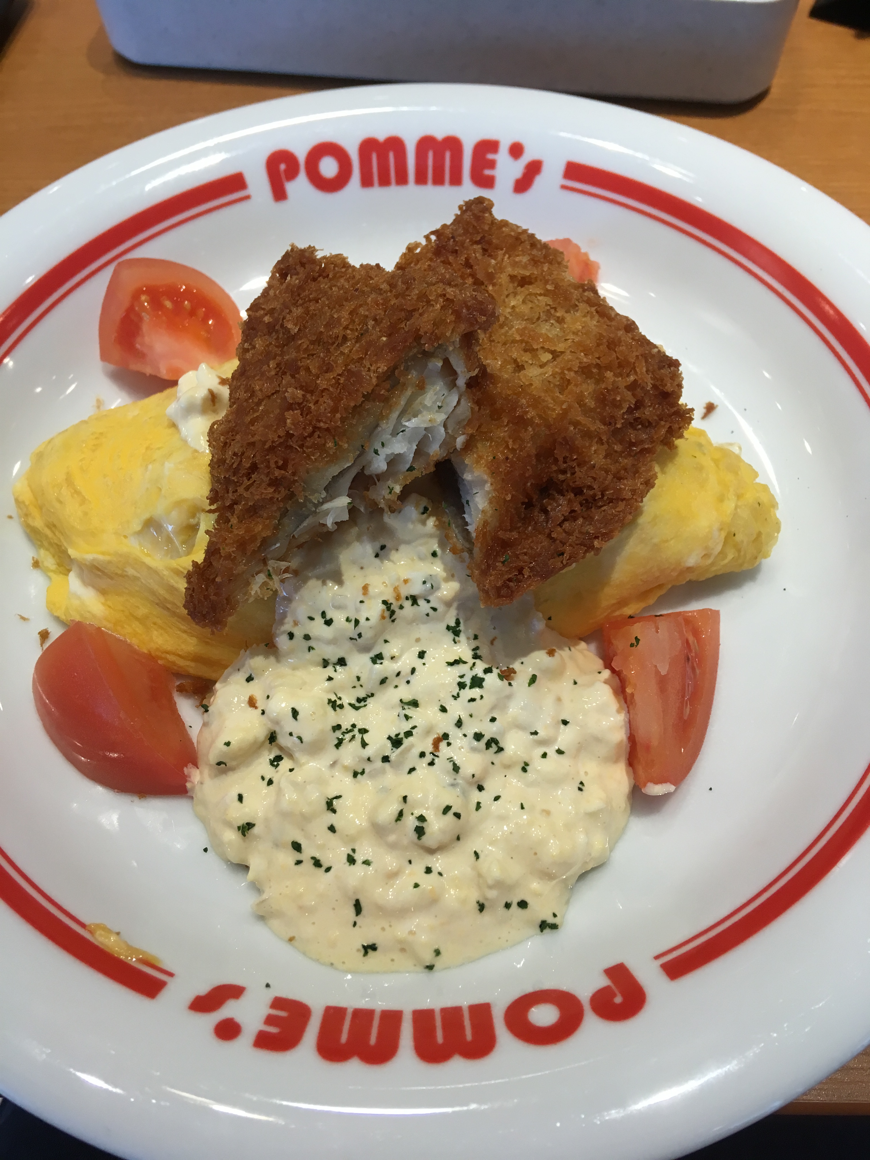 Fried cod omurice with tomatoes and mayo!